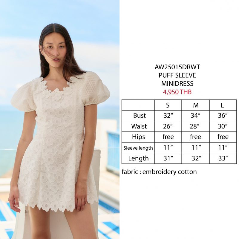 - ดีไซน์ แขนพัฟ (Puff Sleeve) เพิ่มวอลลุ่มให้ช่วงไหล่ ดูหวานน่ารัก